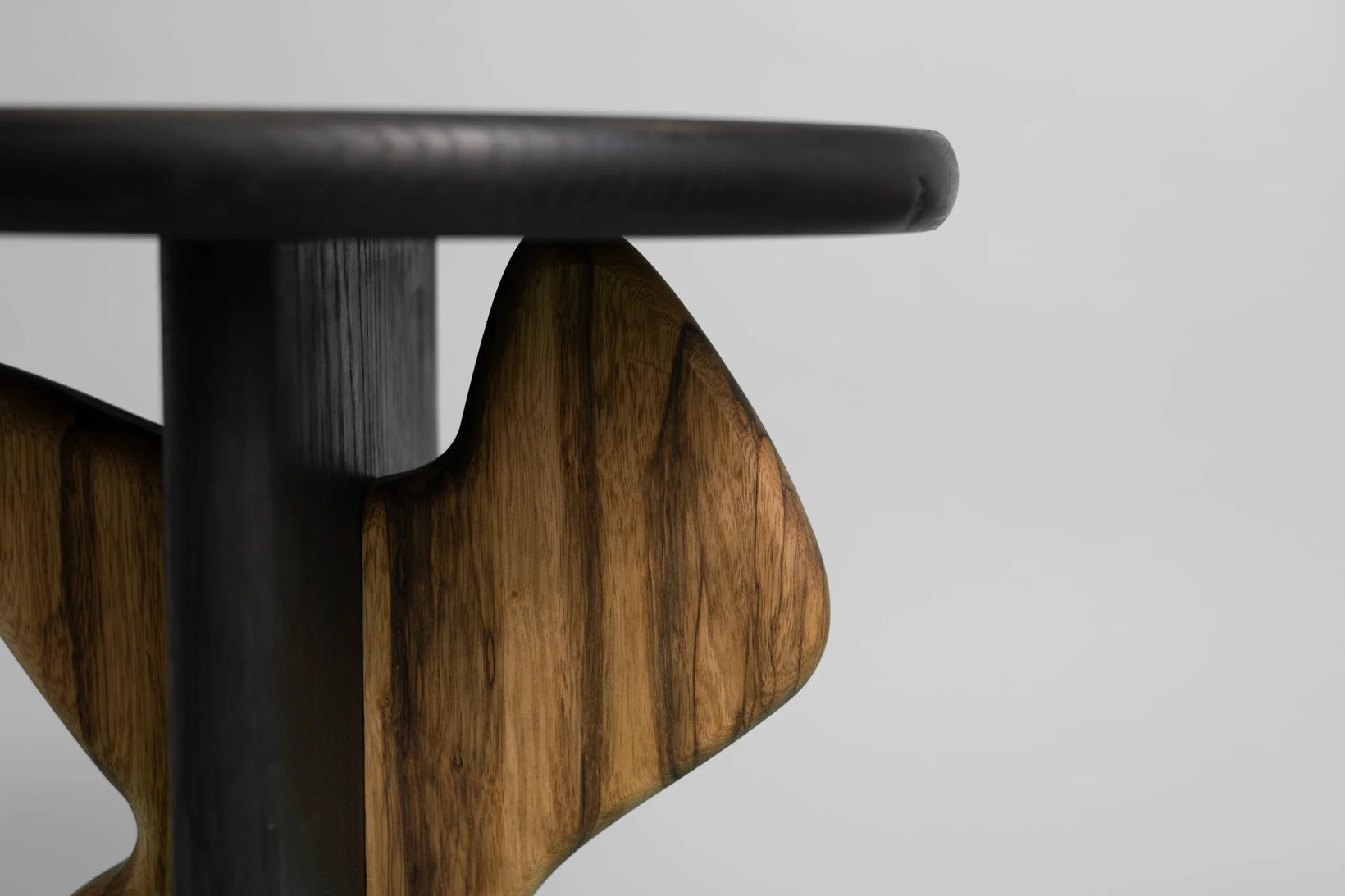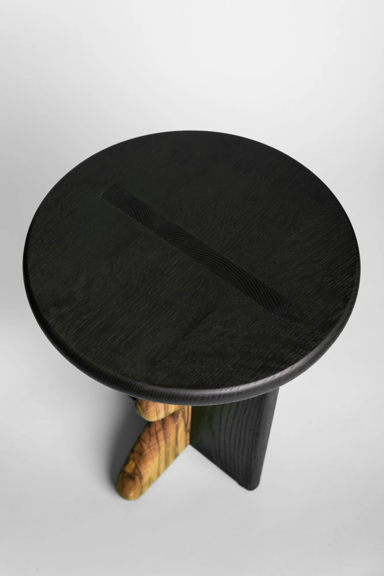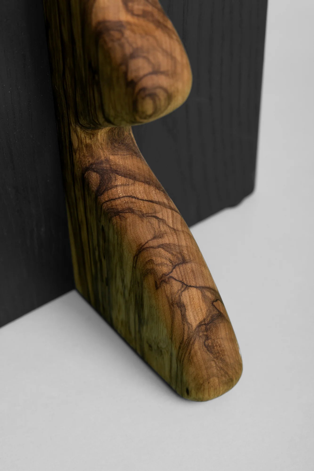 Les parties noires opaques sont en chêne blanc fini avec Precolor Easy « Intense Black » et Oil Plus 2C « Black », tandis que les éléments de forme organique sont en bois de limba noir fini avec Oil Plus 2C « Pure » !