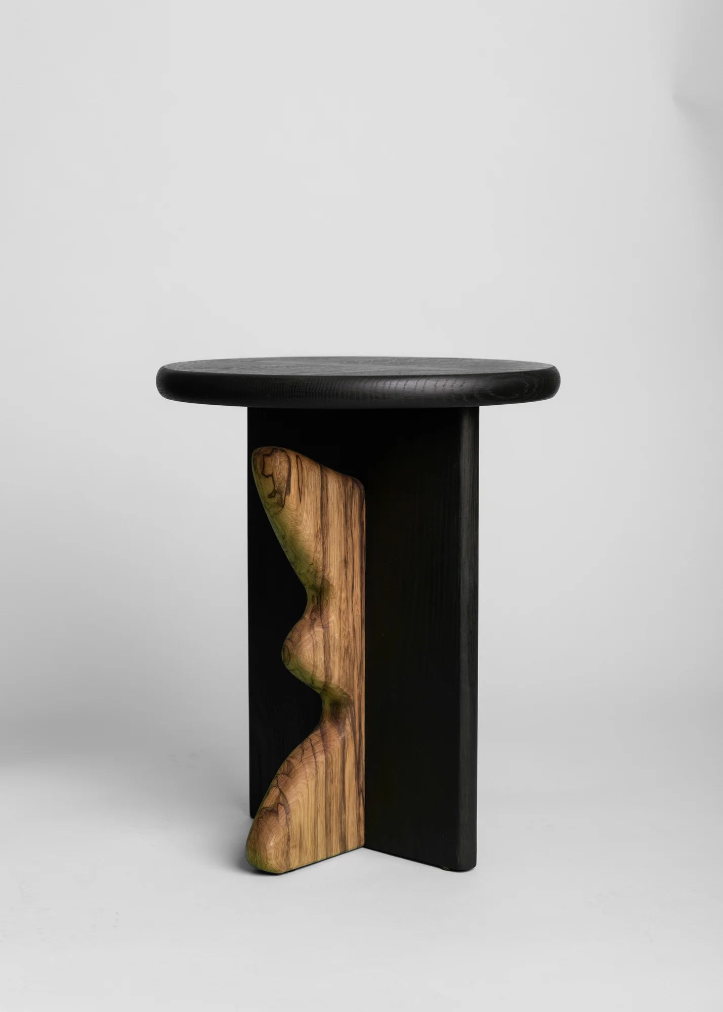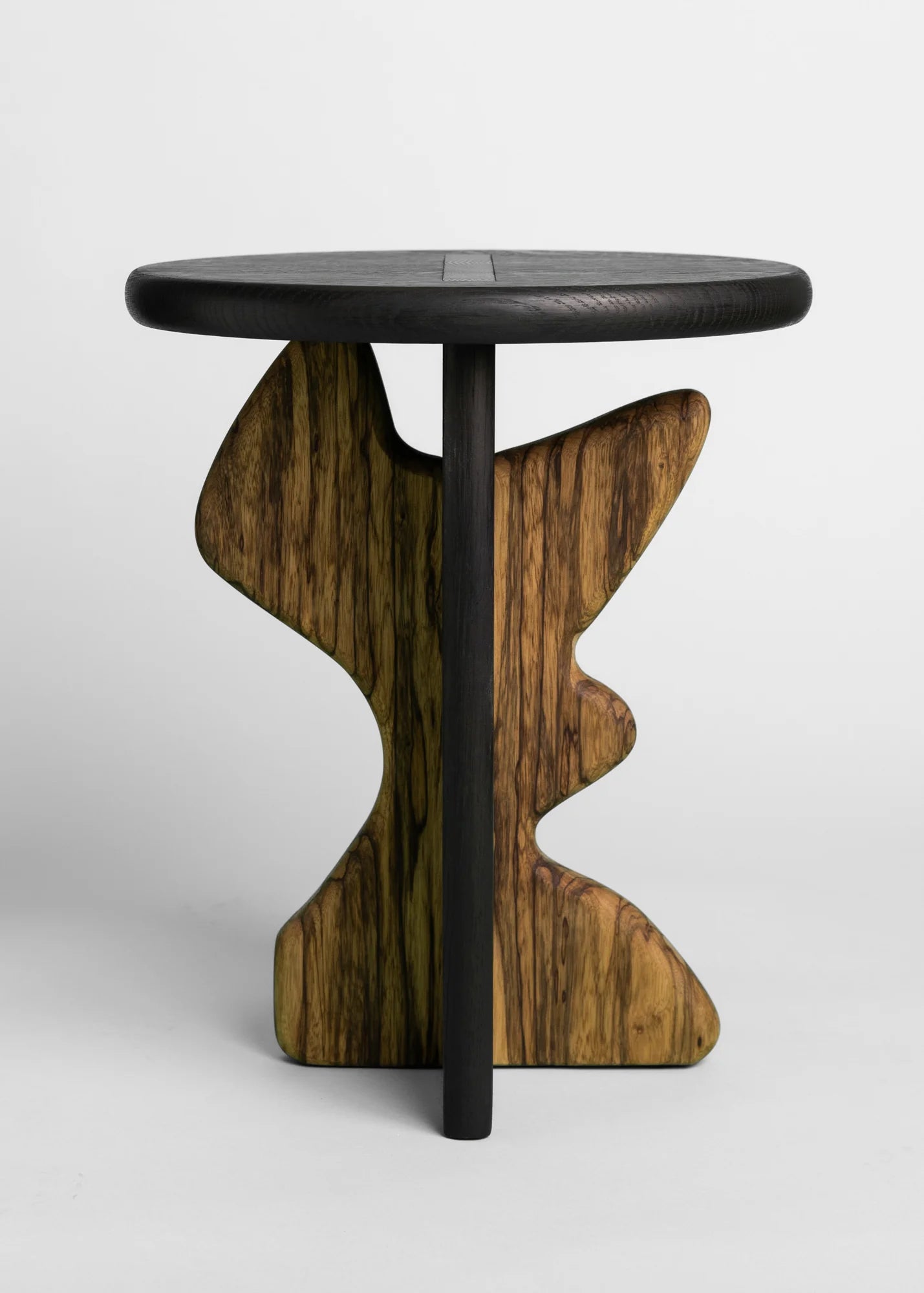 Cette pièce fait partie de la collection SUNDER de Curtisi Co. ! Ces tables d'appoint sont divisées en fragments. Des formes organiques, divisées en fractions, semblent danser à travers le mur solide.
