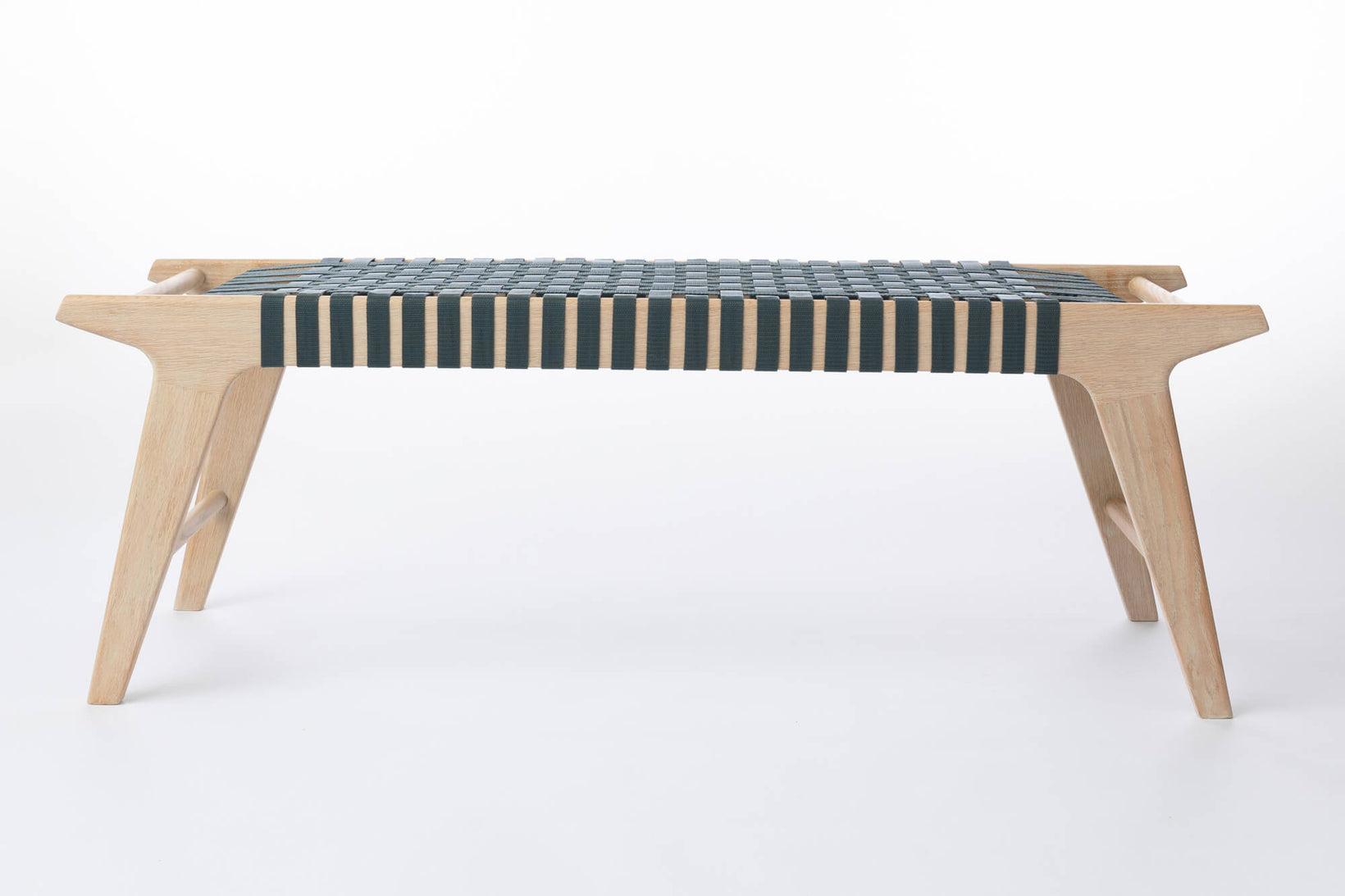 Ce banc a été fabriqué à la main à partir de chêne rouge massif et fini avec Oil Plus 2C « Cotton White ». L'assise du banc a été tissée à la main et ajoute un joli contraste avec le bois de couleur plus claire !