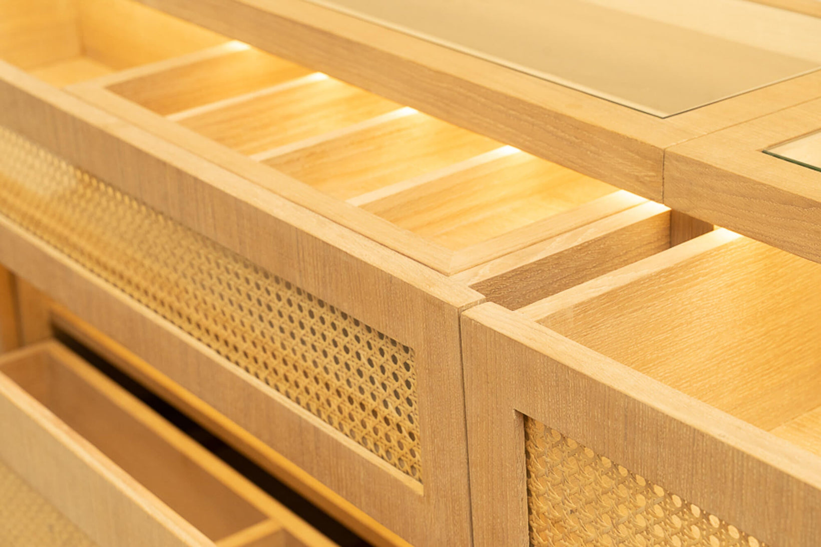 Les menuiseries et les ébénisteries ont été réalisées en chêne français et finies avec Oil Plus 2C "White".